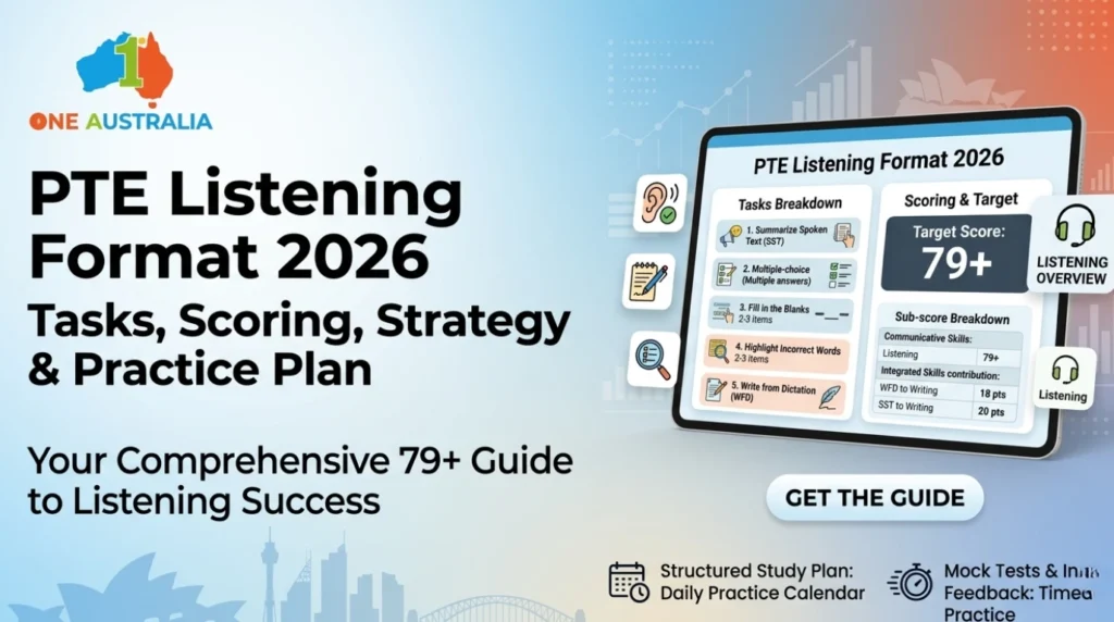 PTE Listening Format 2026: Tasks, Scoring, Strategy & Practice Plan 79+ Guide